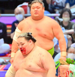 大相撲名古屋場所>◇10日目、大翔鵬が天空海との一戦で血だらけになったのです。