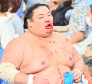 行司がいったん中止させ、止血用に紙を鼻に入れたりした後、取り組みを再開したのです。