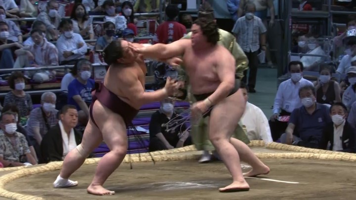 一番には身長1メートル92センチ、体重172キロから繰り出す強烈な突っ張りがあげられます。