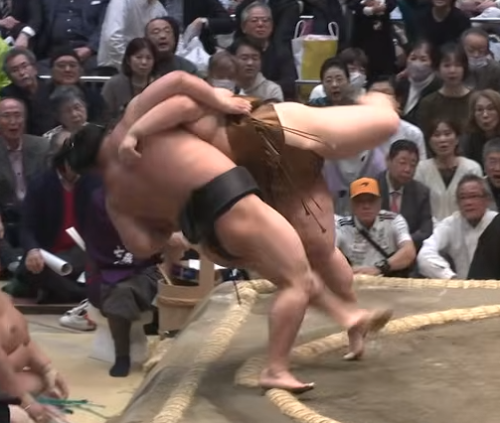 若元春が、王鵬を土俵際で鮮やかにうっちゃり!
